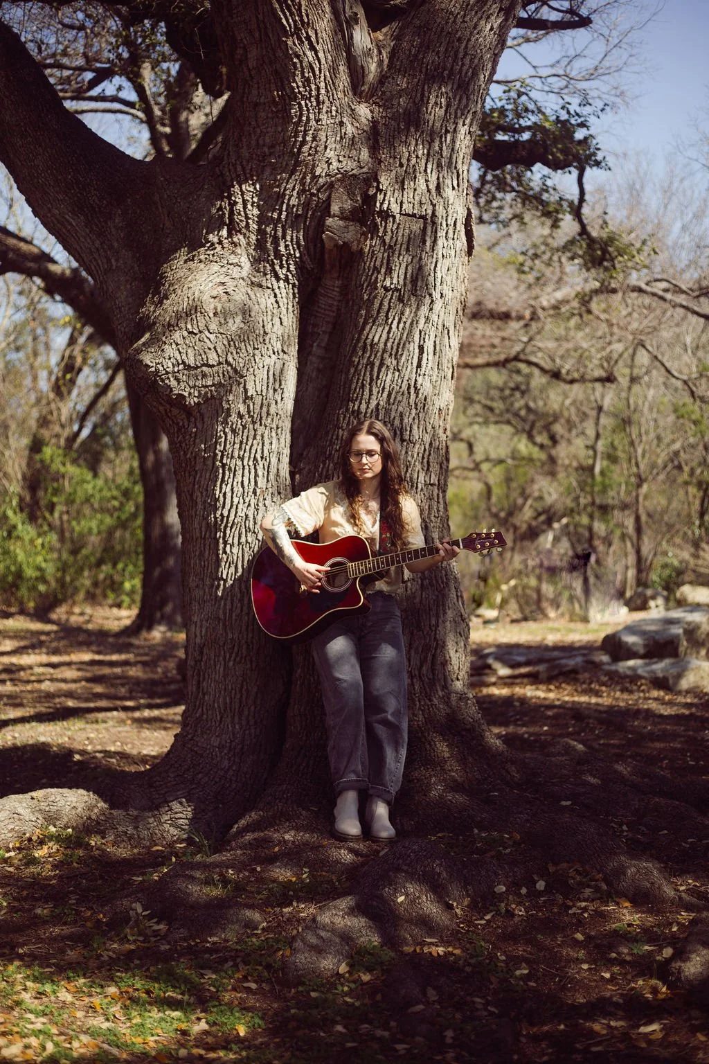 Born and raised in Austin, Avery played classical piano, bass, and guitar throughout her adolescence. She had her first onstage experiences around the age of ten when she played bass and sang in a kids’ rock band, during which she quickly fell in love with performing. In 2021, she decided to fully embrace her trajectory as a live musician, and committed to singing and playing rhythm and lead guitar, bass, and Scruggs-style banjo.